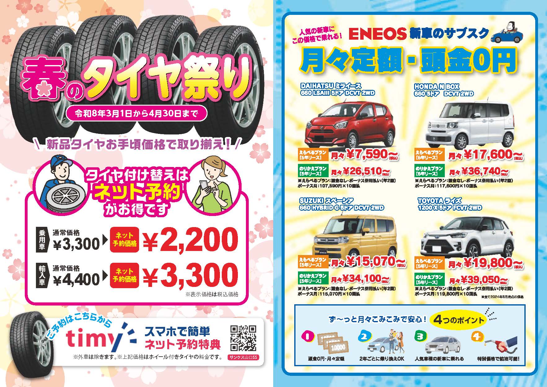 ・外国車、4WD車など別途料金がかかる車両があります。
